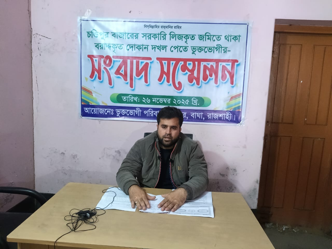 নিজস্ব প্রতিনিধি: রাজশাহীর বাঘায় জোরপূর্বক দোকানঘর দখলের অভিযোগে সংবাদ সম্মেলন করেছেন ওই ভুক্তভোগীর পরিবার । বুধবার (২৬ নভেম্বর) বেলা ১২ টায় তার নিজ ব্যাবসা প্রতিষ্ঠানে এ সংবাদ সম্মেলন অনুষ্ঠিত হয়। ভুক্তভোগী হলেন, বাঘা উপজেলার খুদি ছয়ঘাটি গ্রামের মজিবুর রহমানের ছেলে সোহেল রানা, তিনি তার দোকানঘর উদ্ধার চেয়ে এই সংবাদ সম্মেলন […]